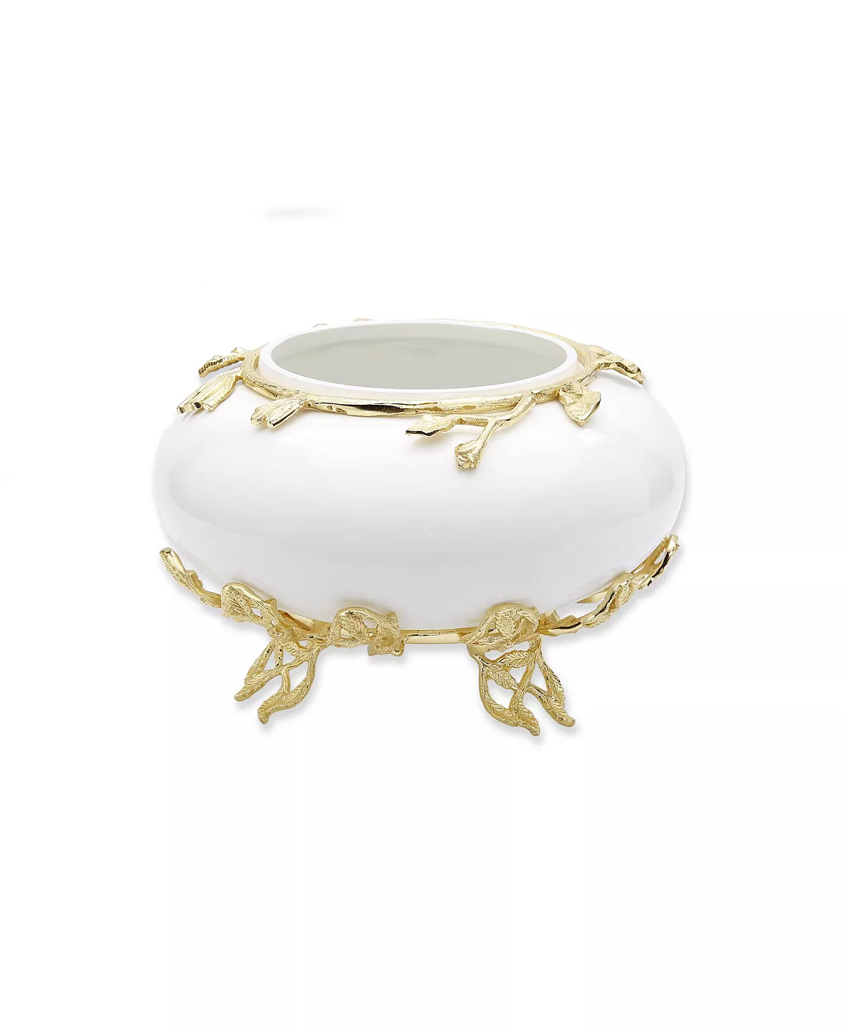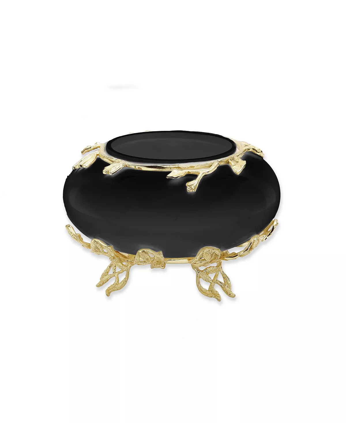 Adorn you table with this modern designed serving bowl. Footed on a base, the color is accentuated with the lustrous gold-tone. It is useful as a serving bowl, and can also be enjoyed as a center piece dish.