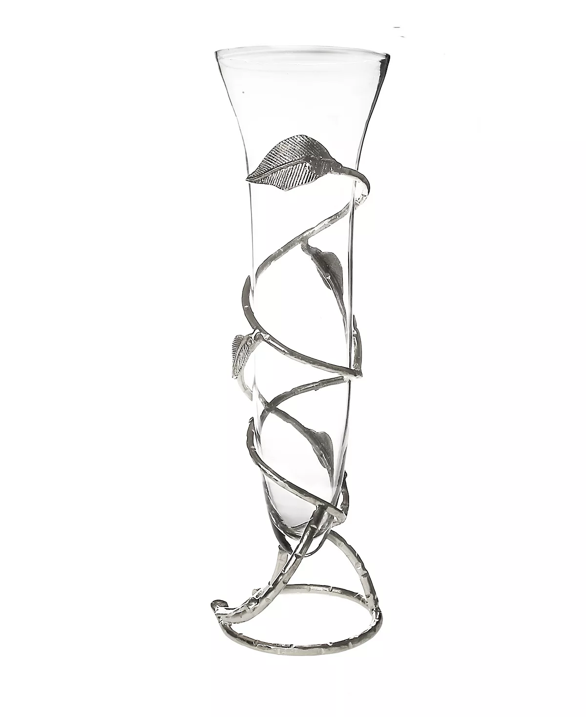 Manufactured from quality glass material, this vase is enhanced by its nickel leaf design. This hand-crafted piece features an intricately detailed leaf design around its body. Dress up fresh flowers in this beatific piece.