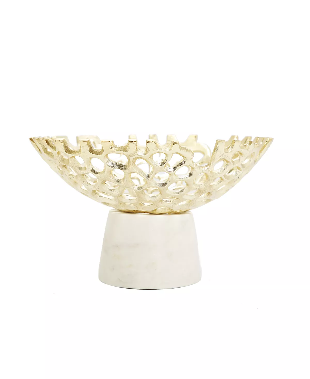 Crafted with quality material, this bowl is useful as centerpiece bowl. This white marble base with it is web design is sure to make a bold presence and will stand out on it is own or filled with your favorite faux floral.