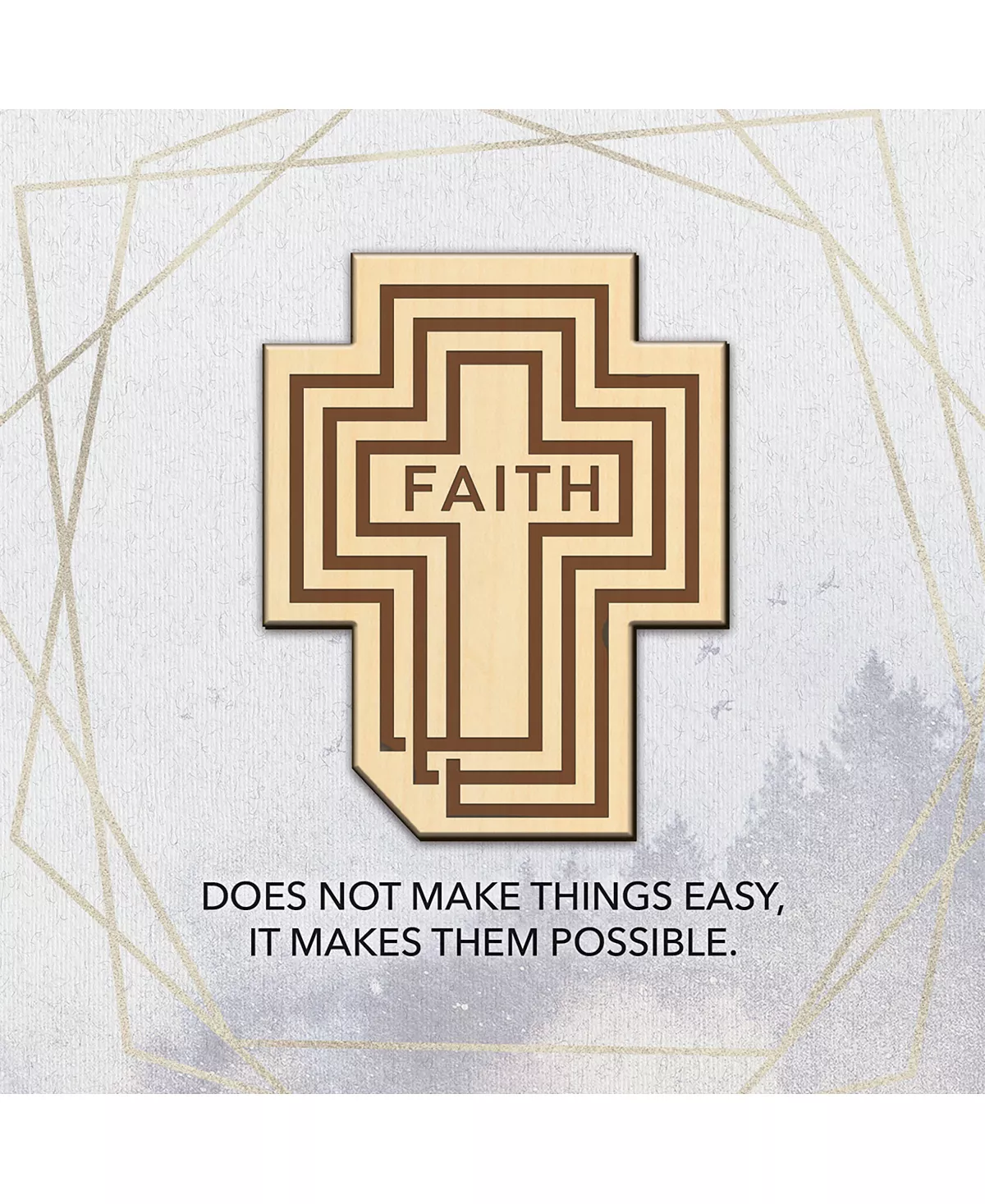 Perfectly lasered titles on real wood are adhered to each illustrated, printed plaques. Each self-standing plaque comes individually boxed and has a metal hanger and easel on the back. ‘Faith does not make things easy, it makes them possible’.