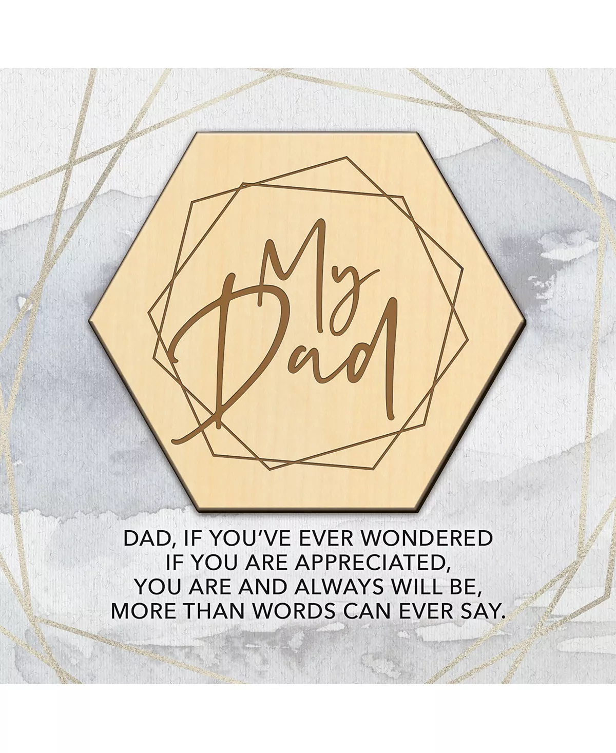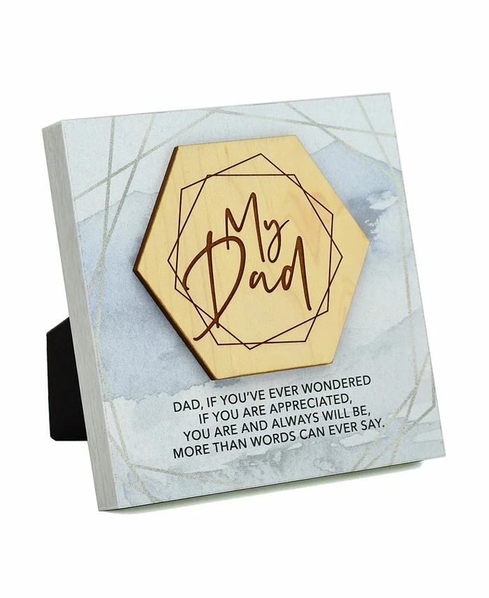 Perfectly lasered titles on real wood are adhered to each illustrated, printed plaques. Each self-standing plaque comes individually boxed and has a metal hanger and easel on the back. ‘My Dad, if you’ve ever wondered if you are appreciated, you are and always will be, more than words can ever say’.
