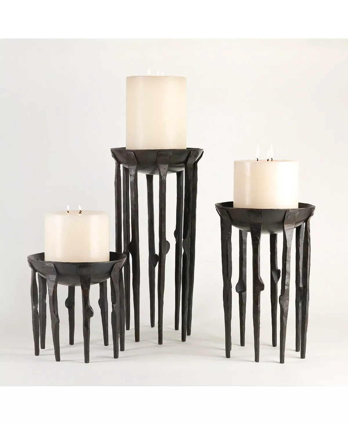 Medieval-inspired iron candleholders bring a sense of scale to a tablescape. Available in three heights. Candles sold separately.