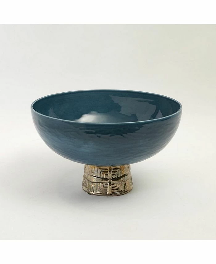Handmade Italian ceramic with a two-glaze finish that requires a truly skilled hand. The blue reactive glaze adds depth and texture that pairs beautifully with the gold metallic patterned collars.