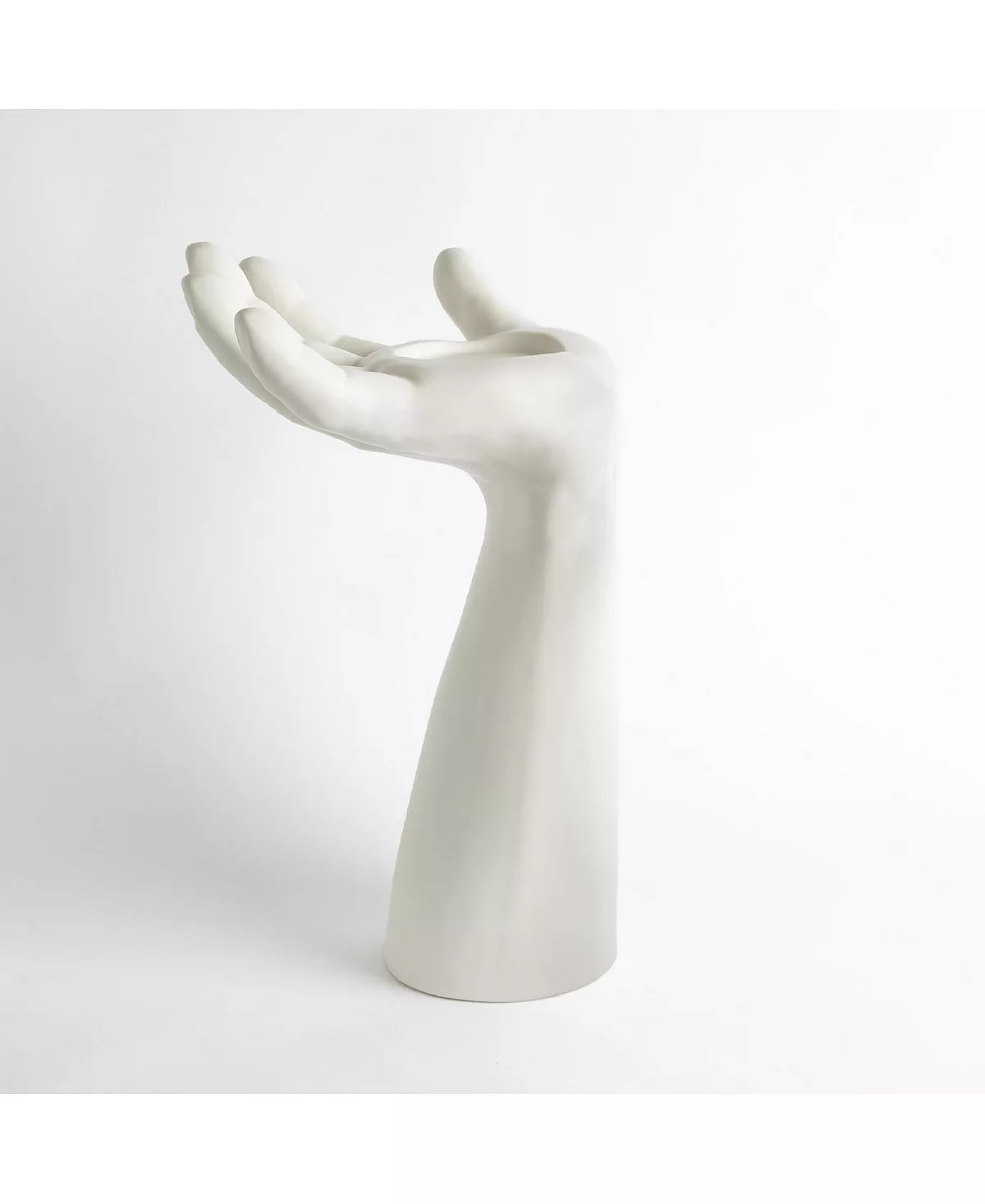 Artfully sculpted expressive hands are realized in fine Portuguese ceramic. Each hand can hold a 4″ pillar candle or the accompanying bowl. Each hand is sold individually.
