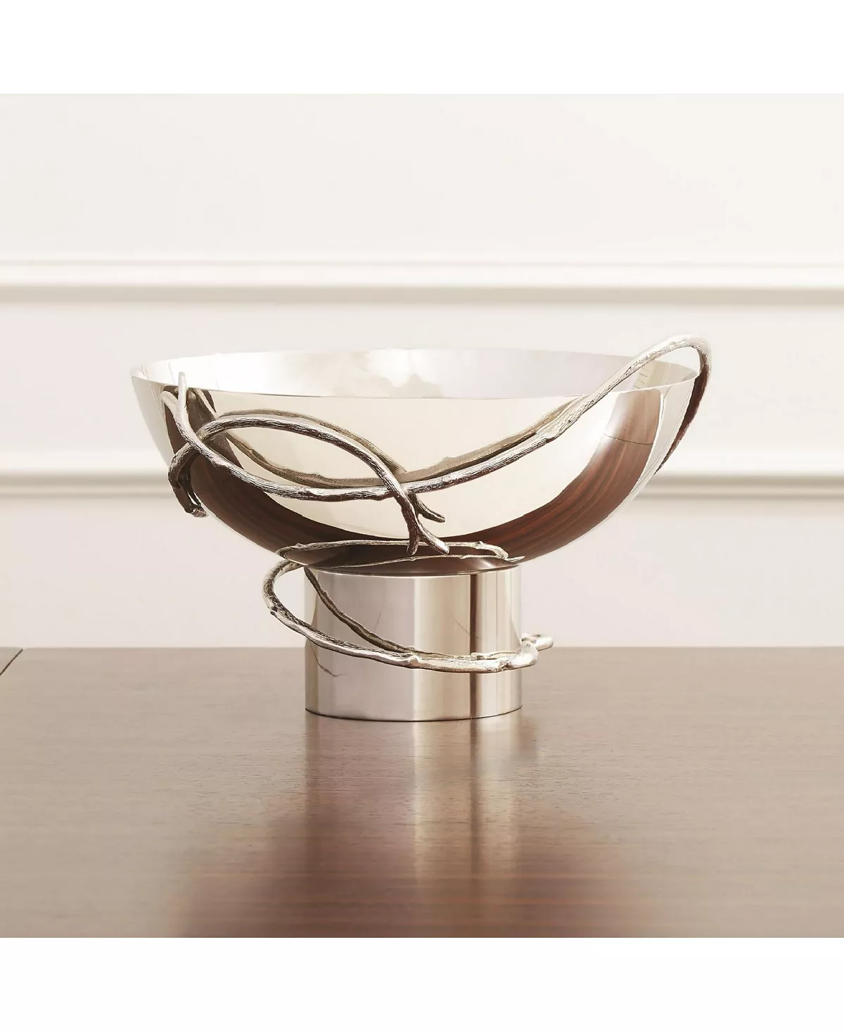 Textured nickel twigs wrap around a tonal bowl creating our nickel twig bowl. A beautiful centerpiece for any table.