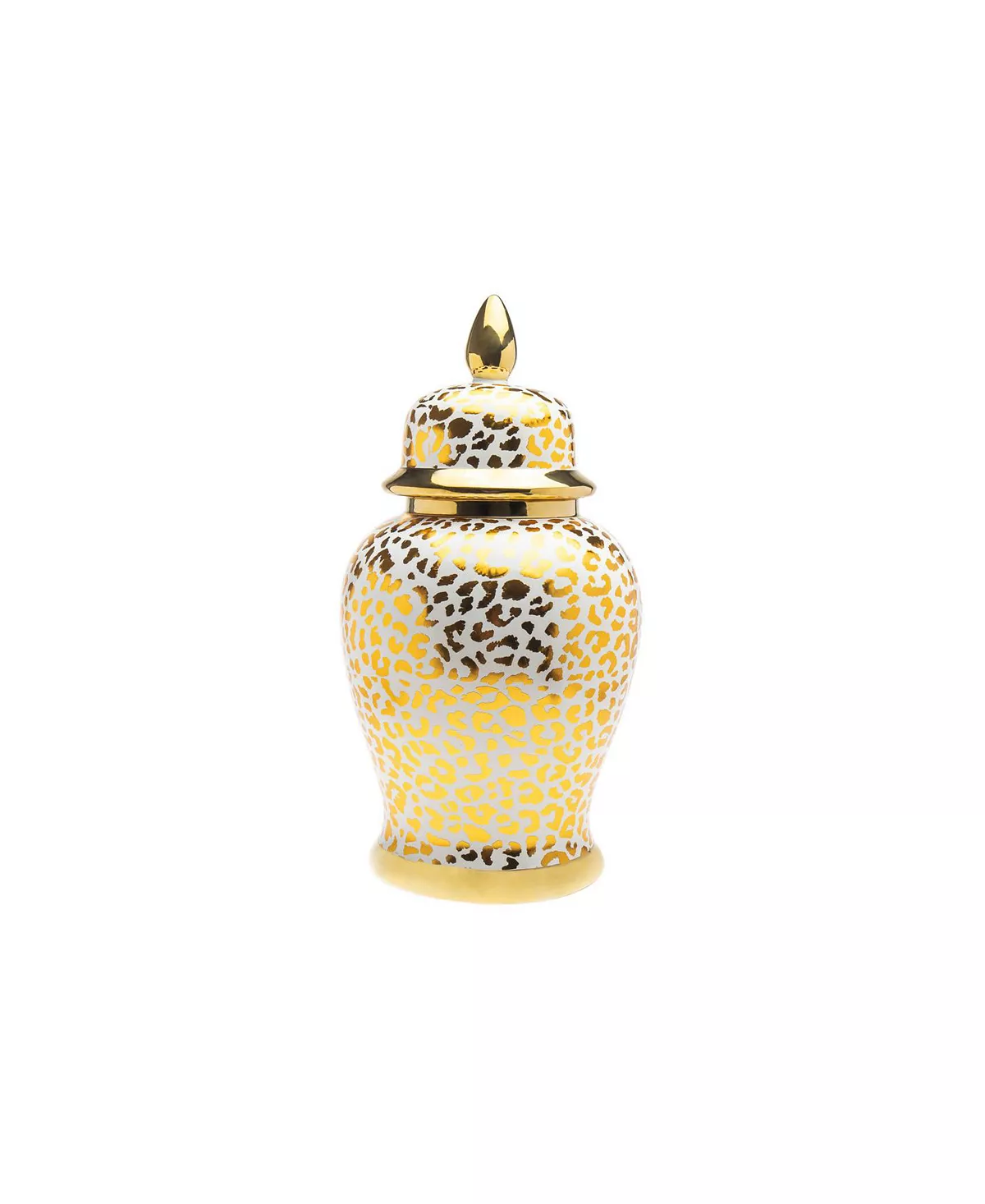 Leopard print design on Ginger Jar with electroplating gold-tone accents on finial and base.