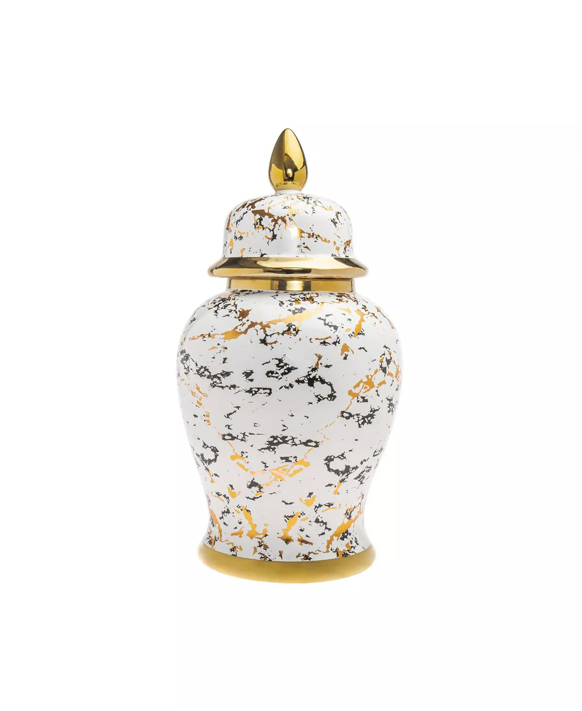 Marble Swirl Ginger Jar on white porcelain body with electroplating gold-tone accents.