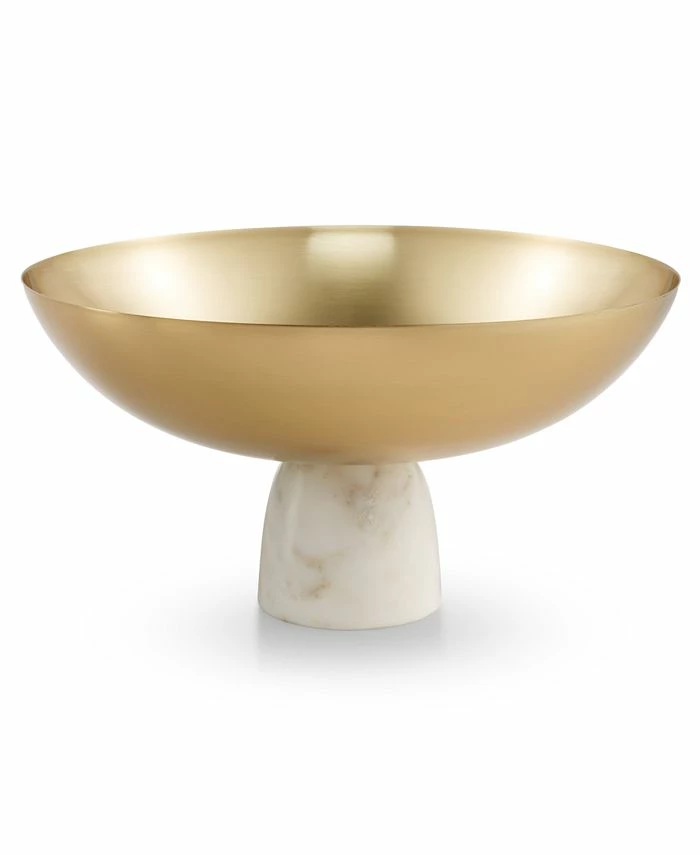 Elevate your home or office décor with the modern lines of Hotel Collection’s gold-tone steel and marble pedestal bowl. Display it alone on a table, buffet or sideboard, or fill it with fruit or other foods.
