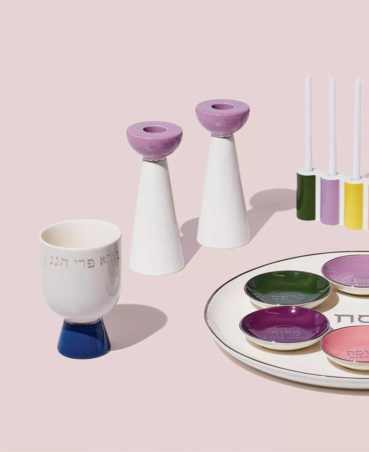 For Friday night lights, these candle sticks from kate spade new york look pretty on the Shabbat table or your windowsill and on the shelf the rest of the week.
