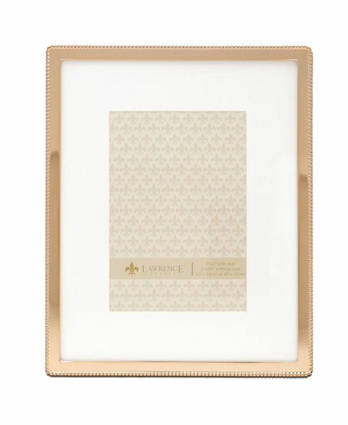Gorgeous decorative polished gold-tone cast metal picture frame with beautiful detailed beaded design. Heavy weight cast metal picture frame is made with exceptional workmanship and comes with glass to protect your photo.