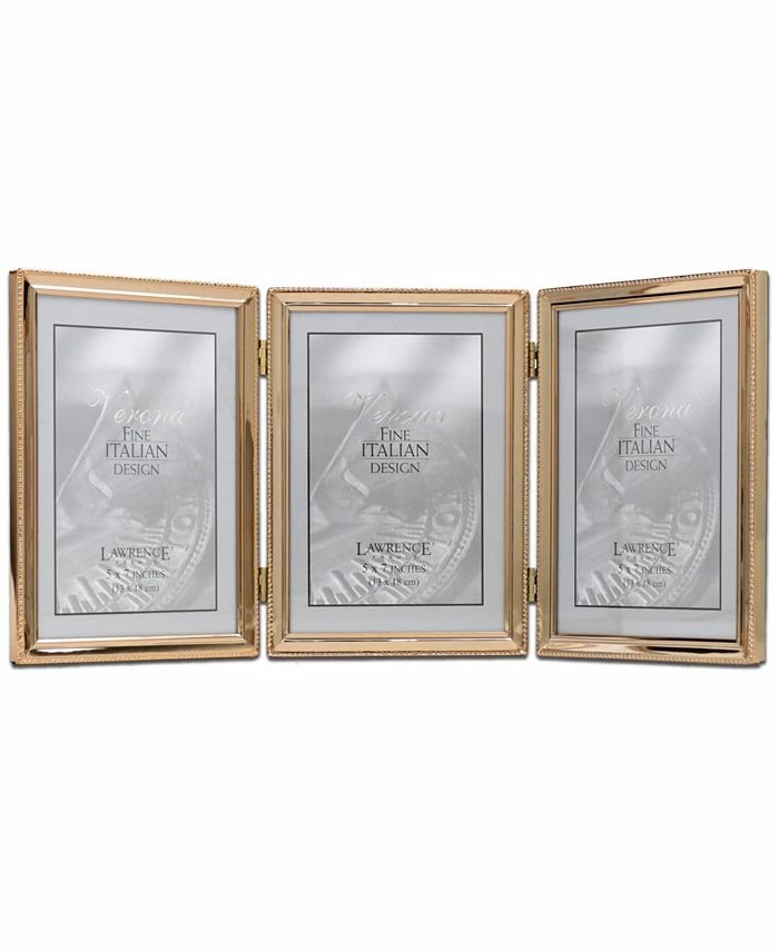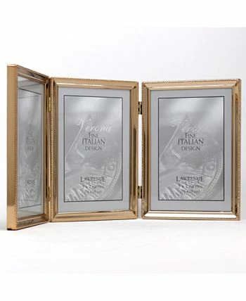 Elegant gold-tone metal picture frame with delicate beading accent that will hold your cherished photo for years to come. High quality black velvet backing for vertical or horizontal table top display, and hangers for vertical or horizontal wall mounting.