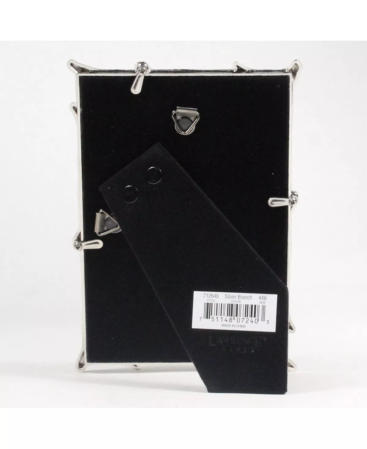 Gorgeous decorative silver branch design picture frame. This polished silver plated metal frame has rich and lustrous gold finish. High quality black velvet backing with easel for vertical or horizontal table top display, and comes with hangers for vertical or horizontal wall mounting.