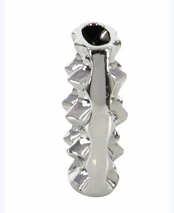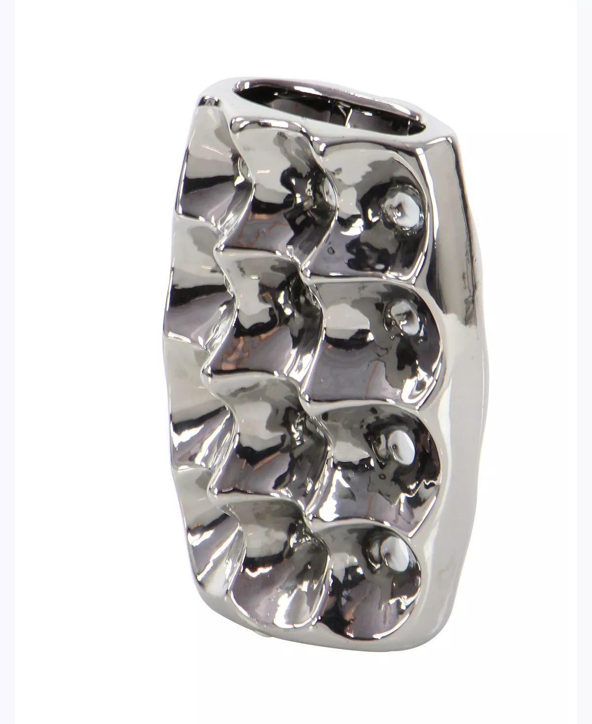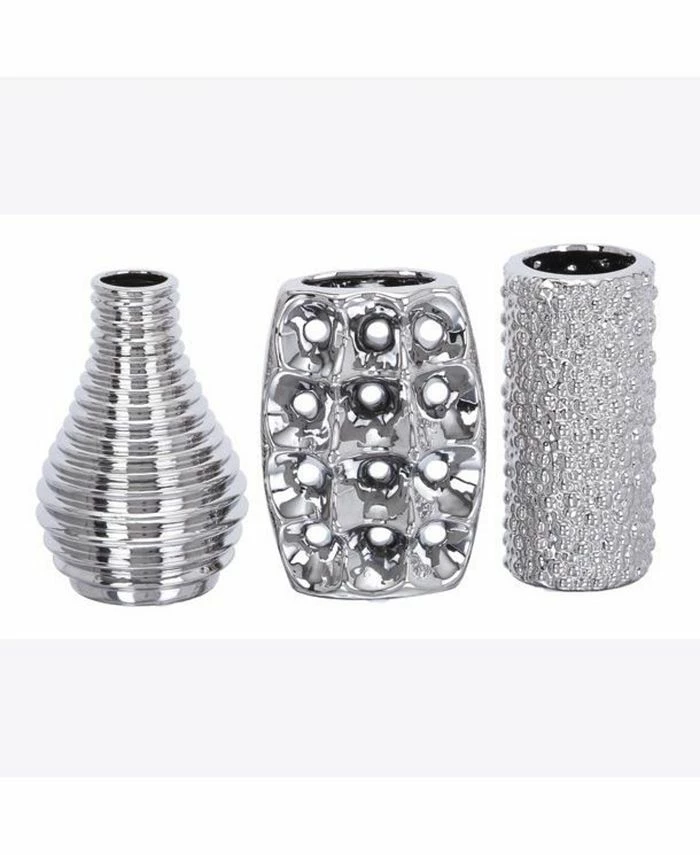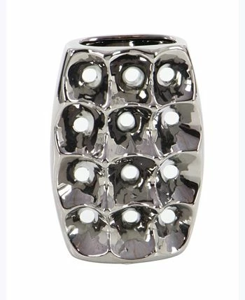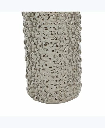 - Modern round ceramic vases showcase a polished and hammered silver ceramic finish